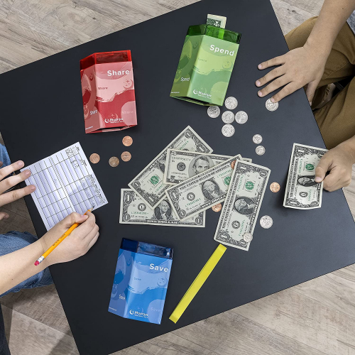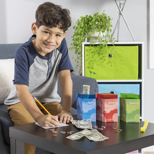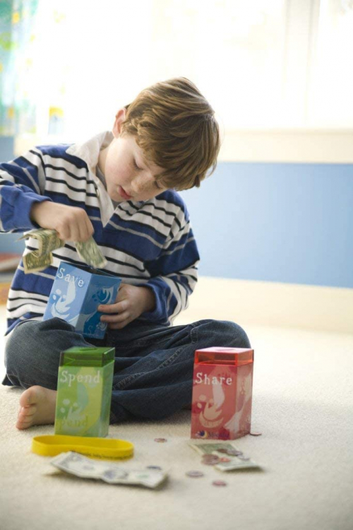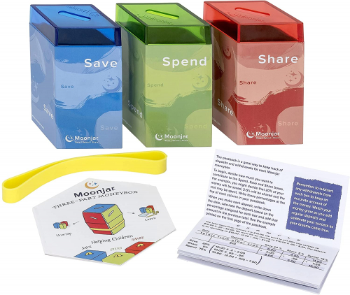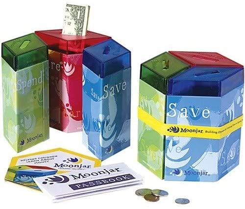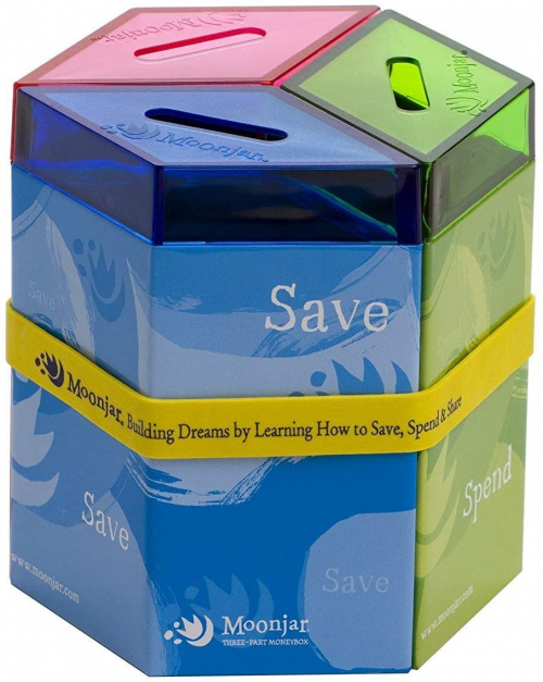 Classic Award Winning Save Spend Share Educational Tin Toy Bank with Passbook| Moneybox for Children 3+ Years | Teaches Responsible Money Management & Financial Skills - Moonjar
