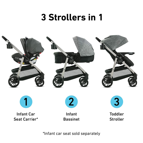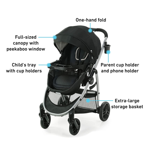 Modes Pramette Stroller - Reversible Seat, Baby Stroller with True Bassinet Mode, Extra Storage, Pierce Pierce Pramette, Child Tray, One Hand Fold - Graco