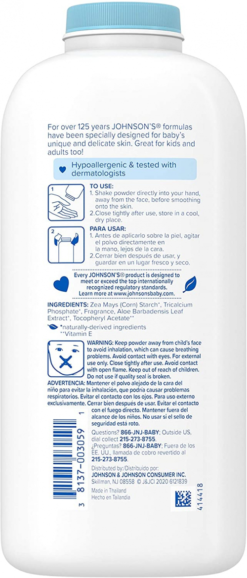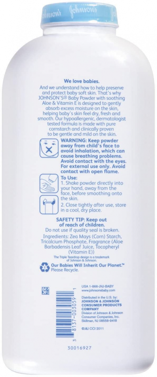 Powder - Hypoallergenic and Free of Parabens, and Dyes for Gentle Baby Skin Care, Phthalates, Naturally Derived Cornstarch with Aloe & Vitamin E for Delicate Skin, 15 oz - Johnson's Baby