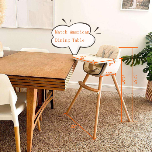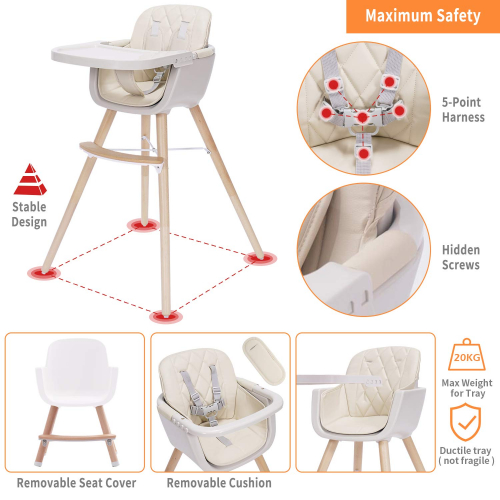 3-in-1 Baby High Chair with Adjustable Legs - Wooden High Chair Made of Sleek Hardwood & Premium Leatherette, Ideal for Small Apartment A Cream, Tray -Cream Color Dishwasher Safe - Mallify