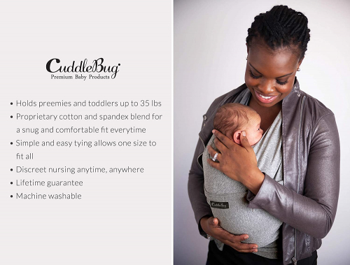 Baby Wrap Sling + Carrier - Newborns & Toddlers up to 36 lbs - Hands Free - Gentle - Stretch Fabric - Ideal for Baby Showers - One Size Fits All (Grey) - CuddleBug