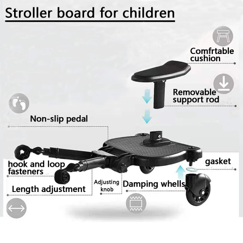 21.65 x 13.01 x 14.17 inch Universal Pram Pedal Adapter - 2-in-1 Stroller Board with Detachable Seat, Buggy Board Suitable for Most Brands of Strollers, Holds Children Up to 55lbs - Naniruok