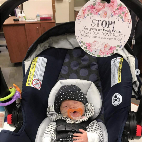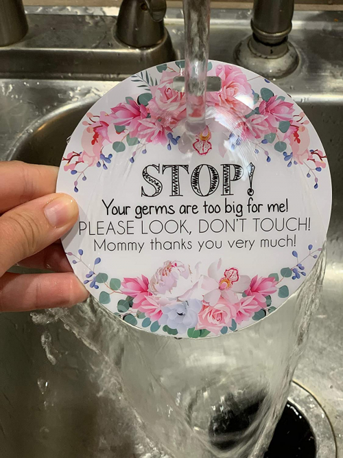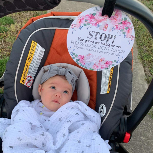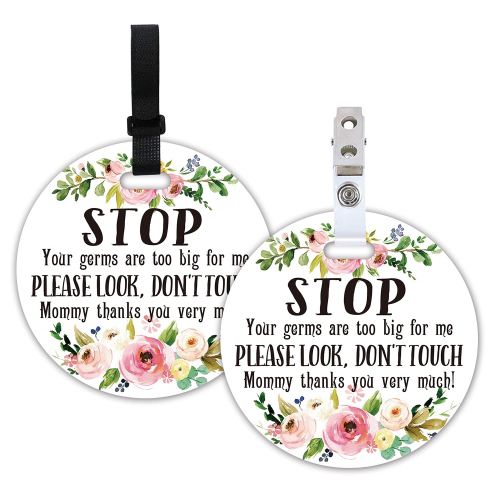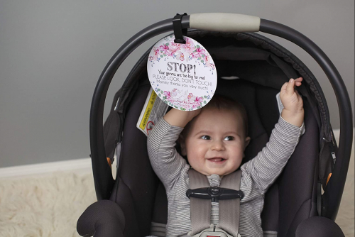 THREE LITTLE TOTS – Flower Stop No Touching Baby Car Seat Sign or Stroller Tag - CPSIA Safety Tested - Three Little Tots