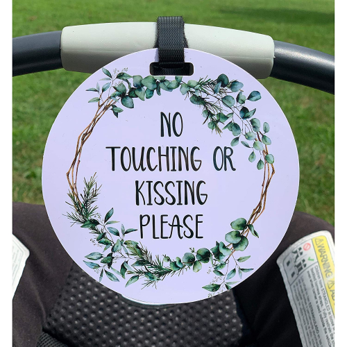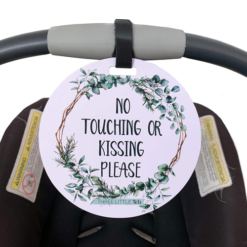 THREE LITTLE TOTS – Modern No Kissing Baby Car Seat Sign or Stroller Tag - CPSIA Safety Tested - Three Little Tots