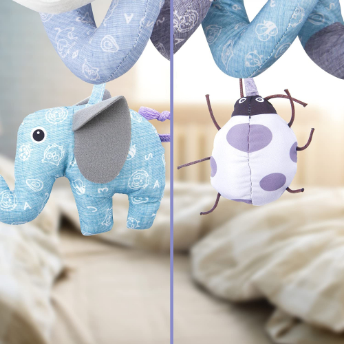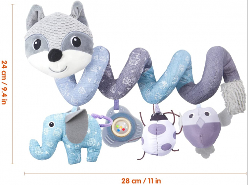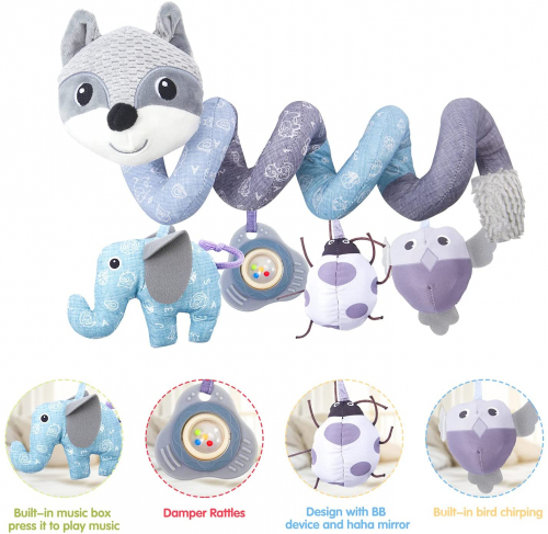 Car Seat Toys - Infant Baby Gray Fox Spiral Plush Activity Hanging Toys for Car Seat Stroller Bar Crib Bassinet Mobile with Music Box BB Squeaker and Rattles(Gray) - HILENBO
