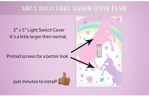 Girls Light Switch Cover Plate Kids Decorative Nursery Teen Toddler Room Decor Bedroom Bathroom Playroom (Pastel Unicorn) - Create-A-Mural