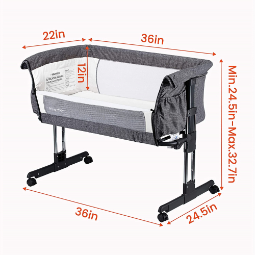 Baby Bassinet Bedside Sleeper Bedside Crib Easy Folding Portable Crib All mesh 2020 New,Grey - Mika Micky